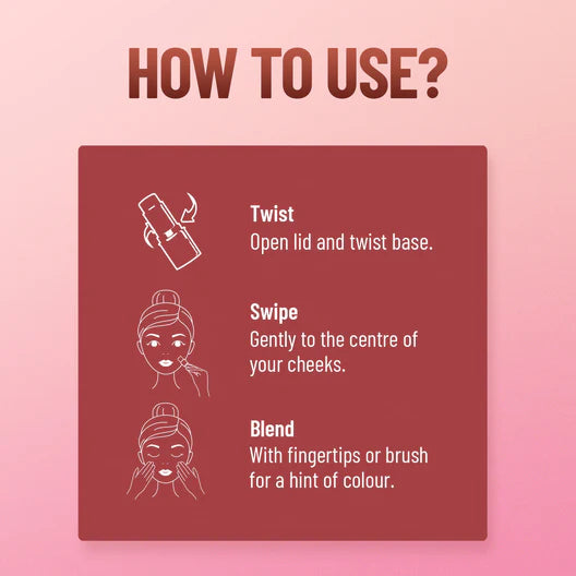 Give your cheeks the radiant glow they deserve with Swiss Beauty Cheek It Up Blush. It is specially designed to add a touch of vibrant colour to your cheeks and provides a seamless and long-lasting finish that complements all skin tones. With its smooth, creamy formula, this blush effortlessly blends onto your skin, giving you a lumi-matte finish. This blush stick is perfect for everyday wear or adding a more intense pop of colour for every occasion. Its buildable formula allows you to customise the intensity to match your desired look, making it perfect for both beginners and makeup enthusiasts. It comes in 6 stunning shades, ranging from pinks to corals to rosy reds, ensuring there's a perfect match for every skin tone. Our blush is also enriched with nourishing ingredients, such as jojoba oil, to care for your skin while providing a beautiful flush of color. It's paraben-free, vegan, and suitable for all skin types.
