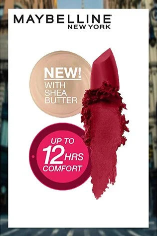Looking for a lipstick that gives a matte finish but also has a creamy feel to it? Look no further. The Maybelline Color Sensational Creamy Matte Lipstick delivers crisp, vibrant lip colour and smooth, supple lips. Maybelline Color Sensational takes on a new feeling with this creamy lipstick formula that is available in multiple ultra-flattering shades. This creamy lipstick is infused with shea butter that keeps your lips moisturised and gorgeous for up to 12 hours.