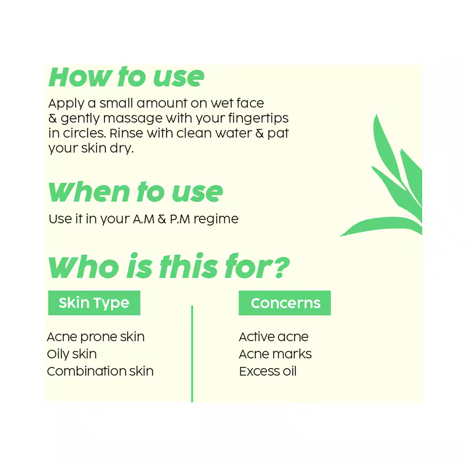 - How to Use: Apply a small amount on your wet face & gently massage with your fingertips in circles. Rinse with clean water & pat your skin dry. Use this cleanser twice a day!