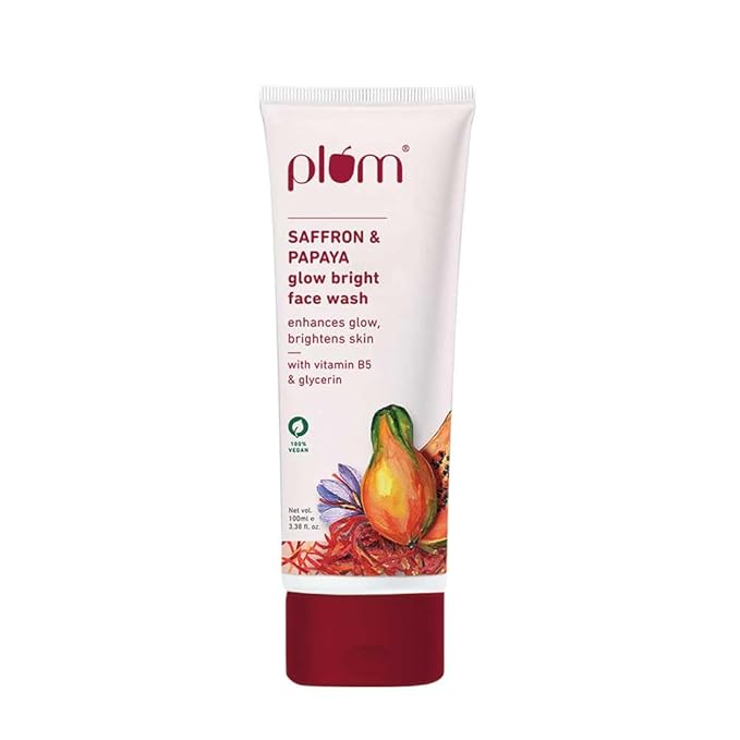 Plum Saffron & Papaya Glow & Brightening Face Wash with Vitamin B5 | Boosts Glow & Brightens Skin | Non-Drying | All Skin Types | Bright Gel Face Wash for Women & Men | for All Skin Types | 100ml