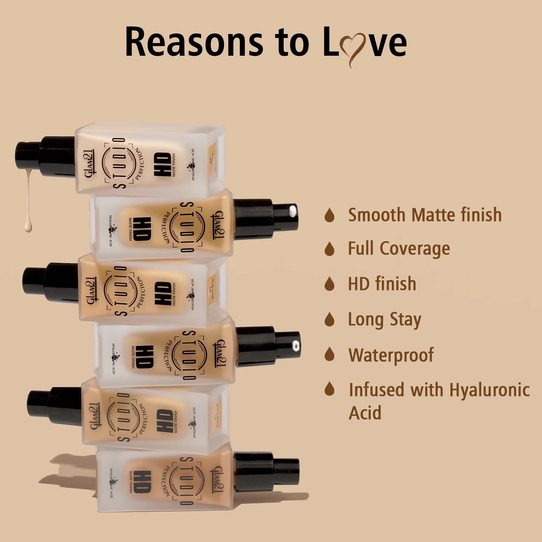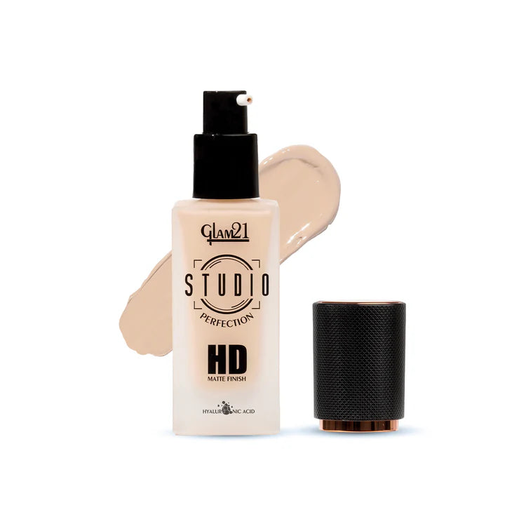 Meet the too-good-to-be-true skin with Studio Perfection HD Matte Foundation with an unbelievable full coverage. It renders high-definition matte finish and stays longer than ever. With the goodness of Hyaluronic Acid, it is hydrating on skin & covers marks, imperfections with a skin-like layer.